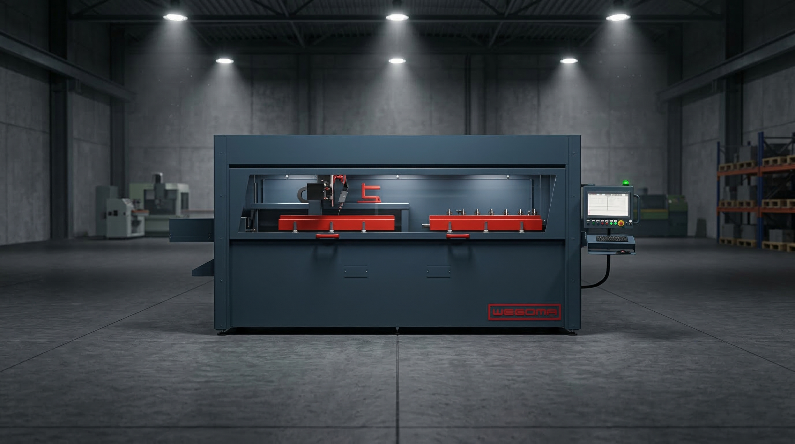 Das ergonomische Bedienfeld ist sehr kompakt, genau wie die gesamte Maschine, die auf nur 10 m² selbst komplexe Profile und Bearbeitungen ermöglicht. Der Werkzeugwechsler ist mit 12 Plätzen erhältlich. Die gesamte Maschine wird über CNC, eine spezielle Software und CADCAM mit CAMPROX gesteuert, einer Software mit 3D-Funktionen und verschiedenen Möglichkeiten: