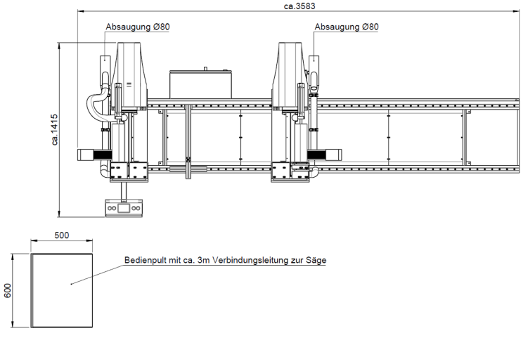 - Rechtes Sägeaggregat fix, und links verfahrbar