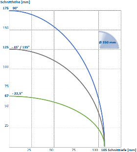 - Stufenlose Winkelauswahl möglich -45°/ 90°/ 135° über Schnellwahltasten